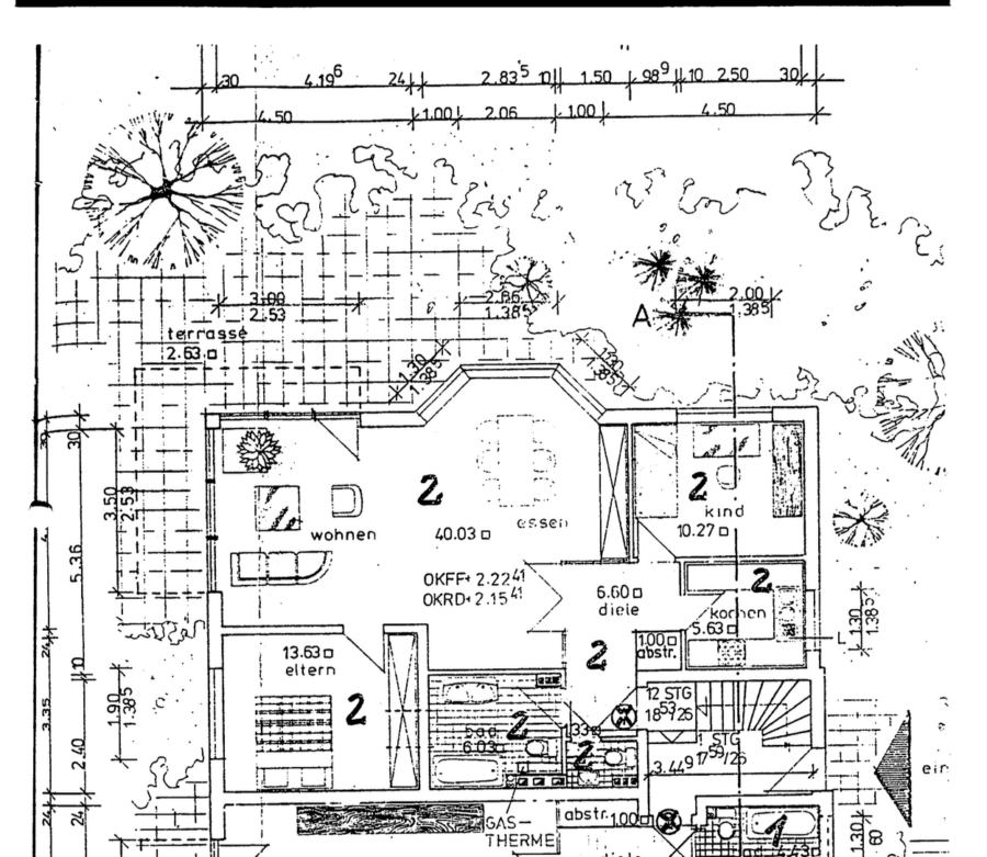 Mit einer Wohnfläche von ca. 95 m² bietet die Wohnung ein durchdachtes Raumkonzept, das sowohl Komfort als auch vielseitige Nutzungsmöglichkeiten vereint. Das Herzstück der Immobilie ist das beeindruckende Wohn- und Esszimmer mit rund 40 m² Wohnfläche, das mit einer großflächigen Fensterfront viel Licht ins Innere lässt und den direkten Zugang zur Terrasse und dem idyllischen Garten ermöglicht. Zwei weitere Zimmer – ideal als Schlafzimmer, Kinderzimmer oder Büro nutzbar – bieten zusätzlichen Raum zum Leben und Entspannen. Die separate Küche sowie ein Badezimmer mit Badewanne und ein zusätzliches Gäste-WC komplettieren das Raumangebot.