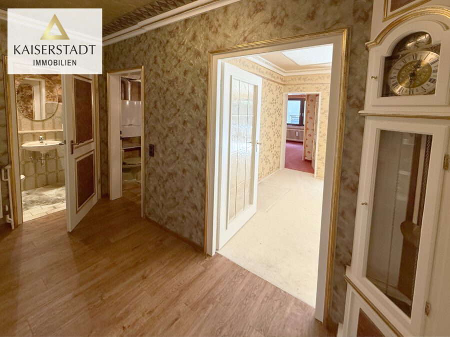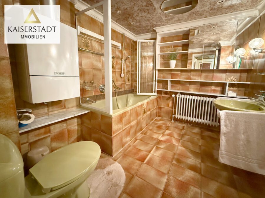 Der gepflegte Zustand der Wohnung lässt sich nicht übersehen, auch wenn die Ausstattung zum Teil aus dem Baujahr stammt und in ihrem originalen, charmanten Retro-Stil erhalten wurde. Stiltapeten, elegante Deckenprofile mit Stuckelementen und nostalgische Fliesen im Bad und WC erzählen von der hochwertigen Ausführung dieser Zeit. Wer möchte, kann hier durch eine geschmackvolle Modernisierung ein echtes Wohnjuwel erschaffen – die Substanz bietet die perfekte Grundlage dafür.